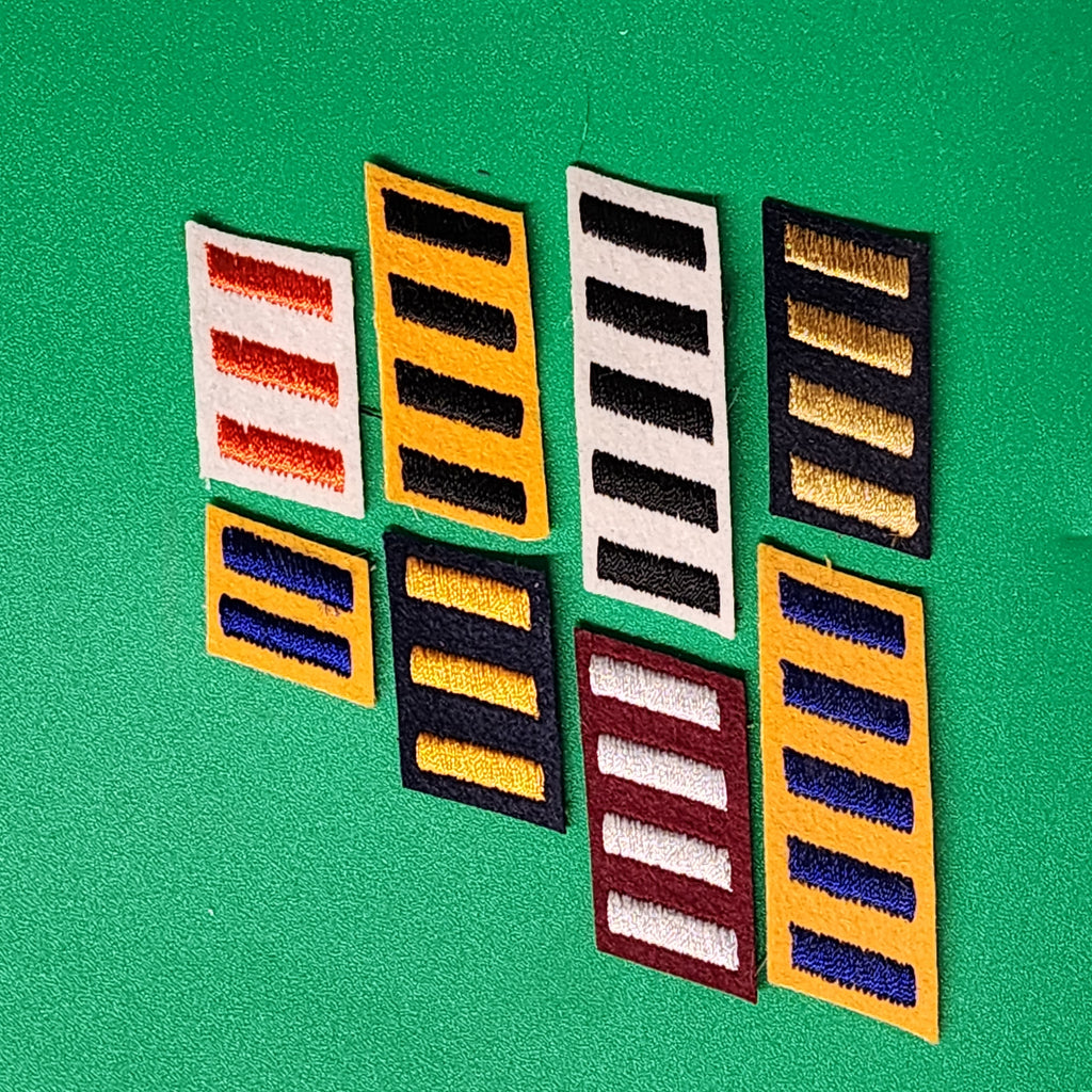 Each insert is sewn on a single piece of scrim felt. Each insert varies in size depending upon the insert being created. Add these to any letterman jacket letter or make them part of any letterman jacket sleeve patch.